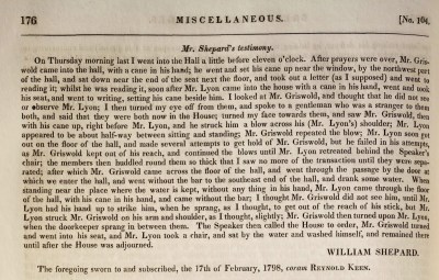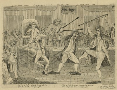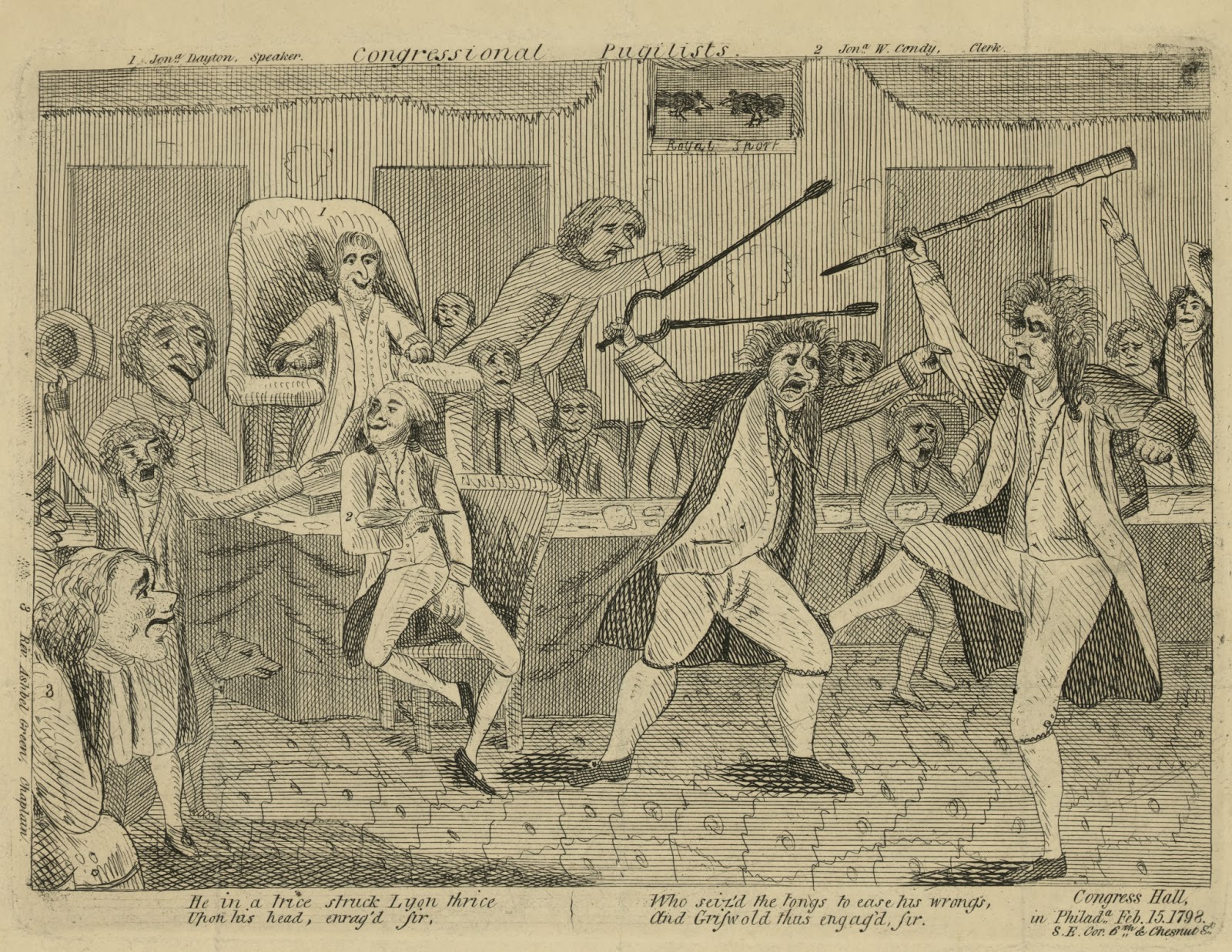 The above cartoon was created from an incident that occurred in Congress in February of 1798 Here is Mr. William Shepard’s testimony of the event: