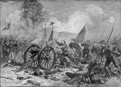 At this critical moment Gen. Green and Majors came dashing up at the head of their victorious columns from the right, and repulsed the enemy, who after having taken my son some four hundred yards, fearing his recapture, brutally and inhumanly murdered him by shooting him in the head with a pistol!