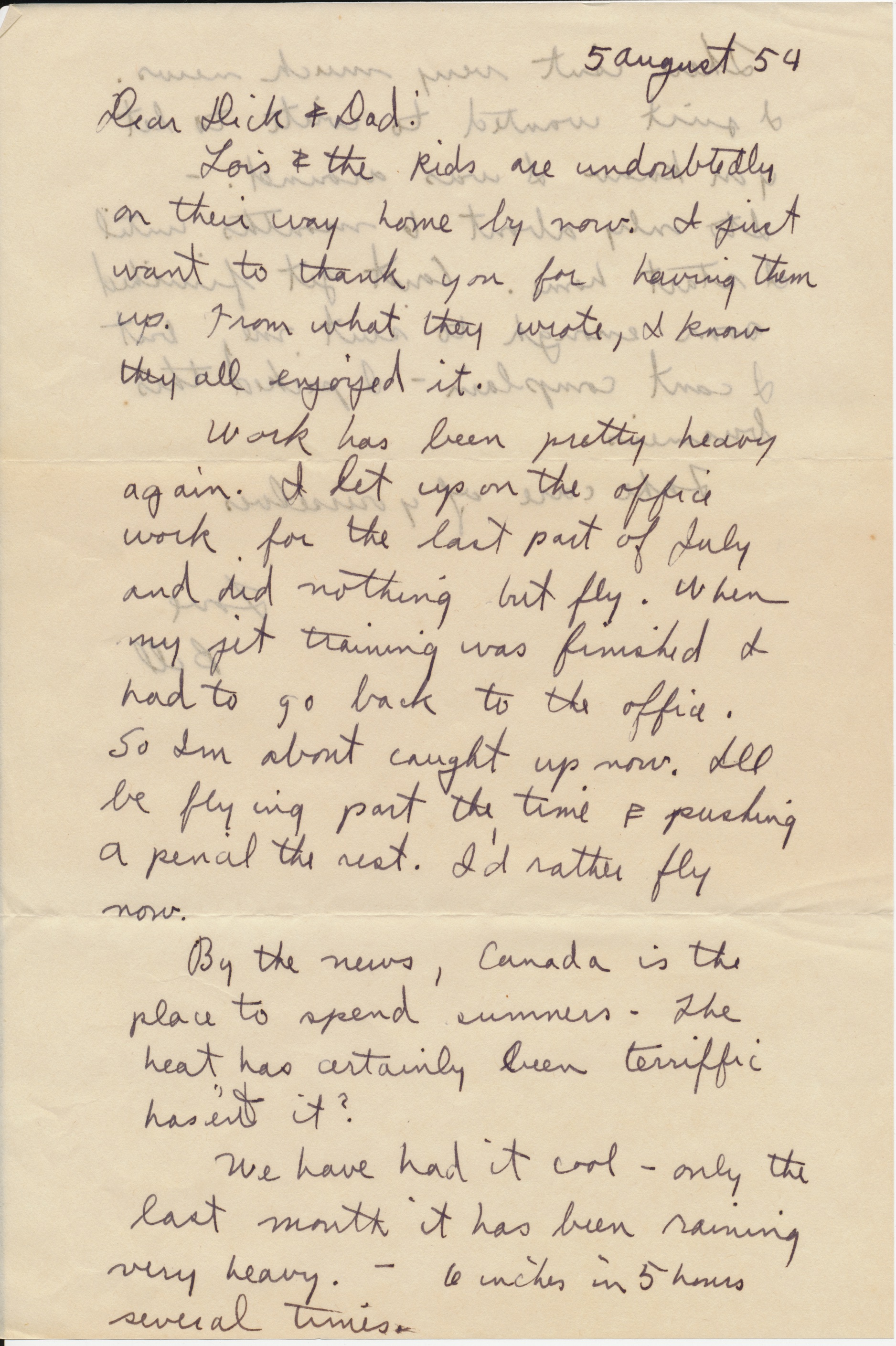 August 5, 1954 William Shepard to Parents