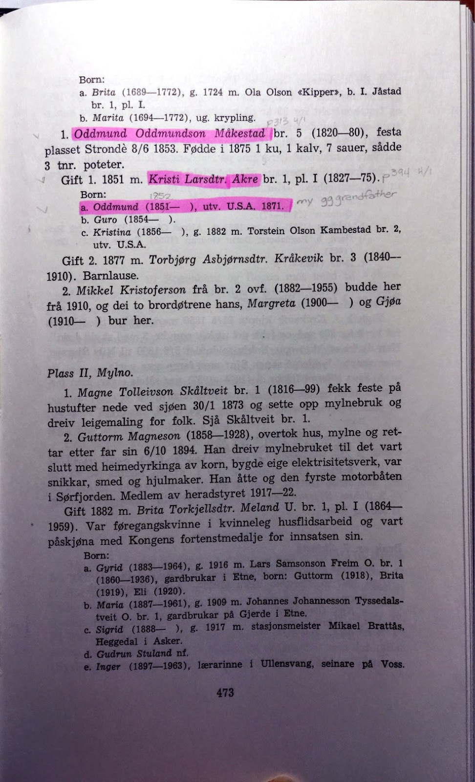 In the process of answering the question, I started looking around at all the new matches on a few of these accounts, and saw some surnames that were of much interest to me. But one in particular stood out –Amund and Måkestad. “How intriguing”, says my brain to me, “must click.”
