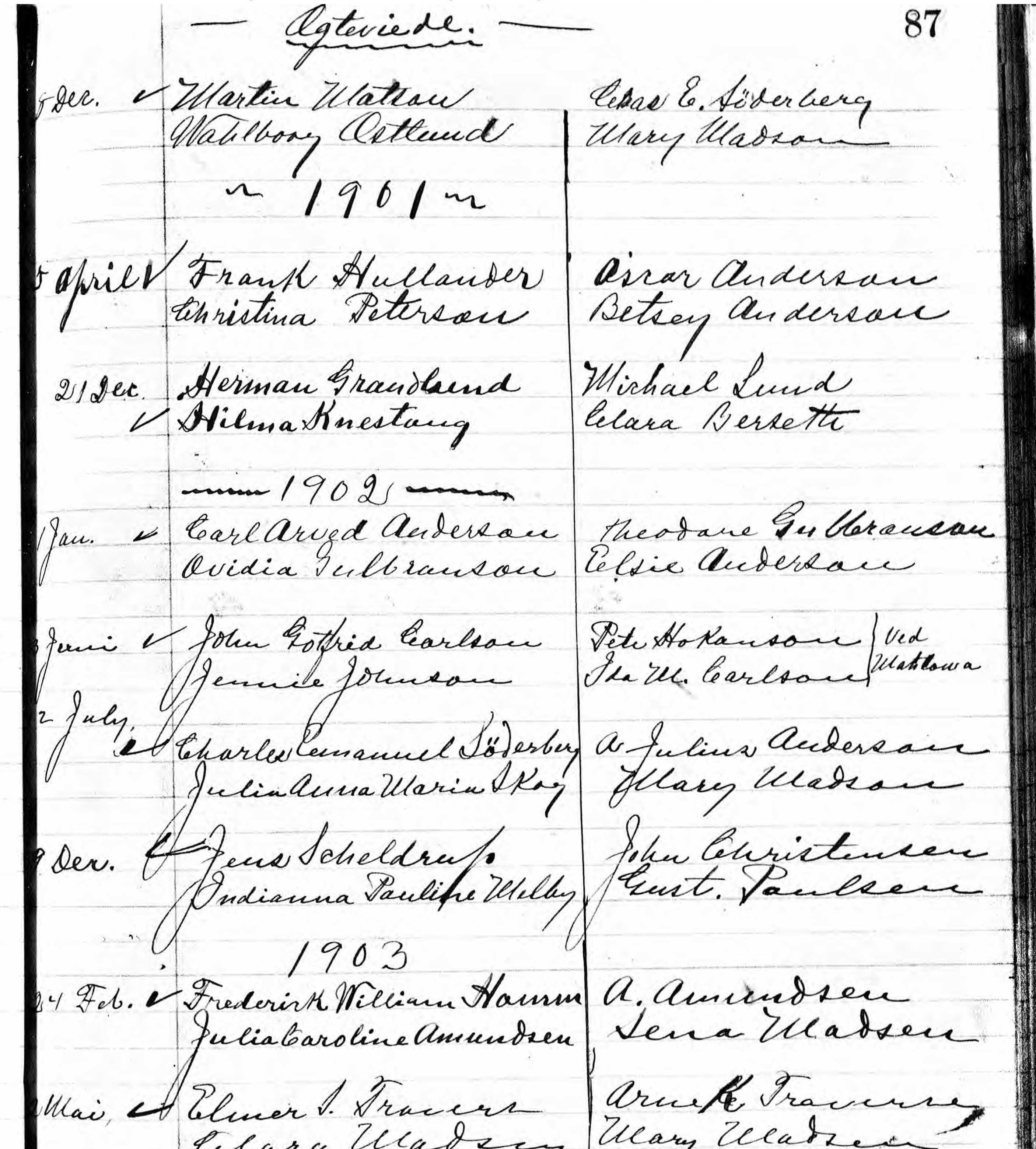 For years I had been looking for evidence that my great grandparents Fred Hamm and Carrie Amundson had actually married, and my grandmother was in fact not illegitimate, which was thought that that might be why her Hamm grand-parents had raised her.