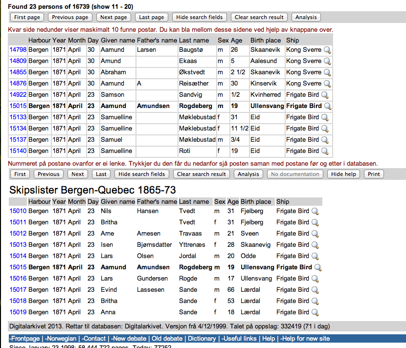 Here is the same Amund leaving Norway in April of 1871 for Quebec at the age of 19. Hmmm, quite a coincidence huh?