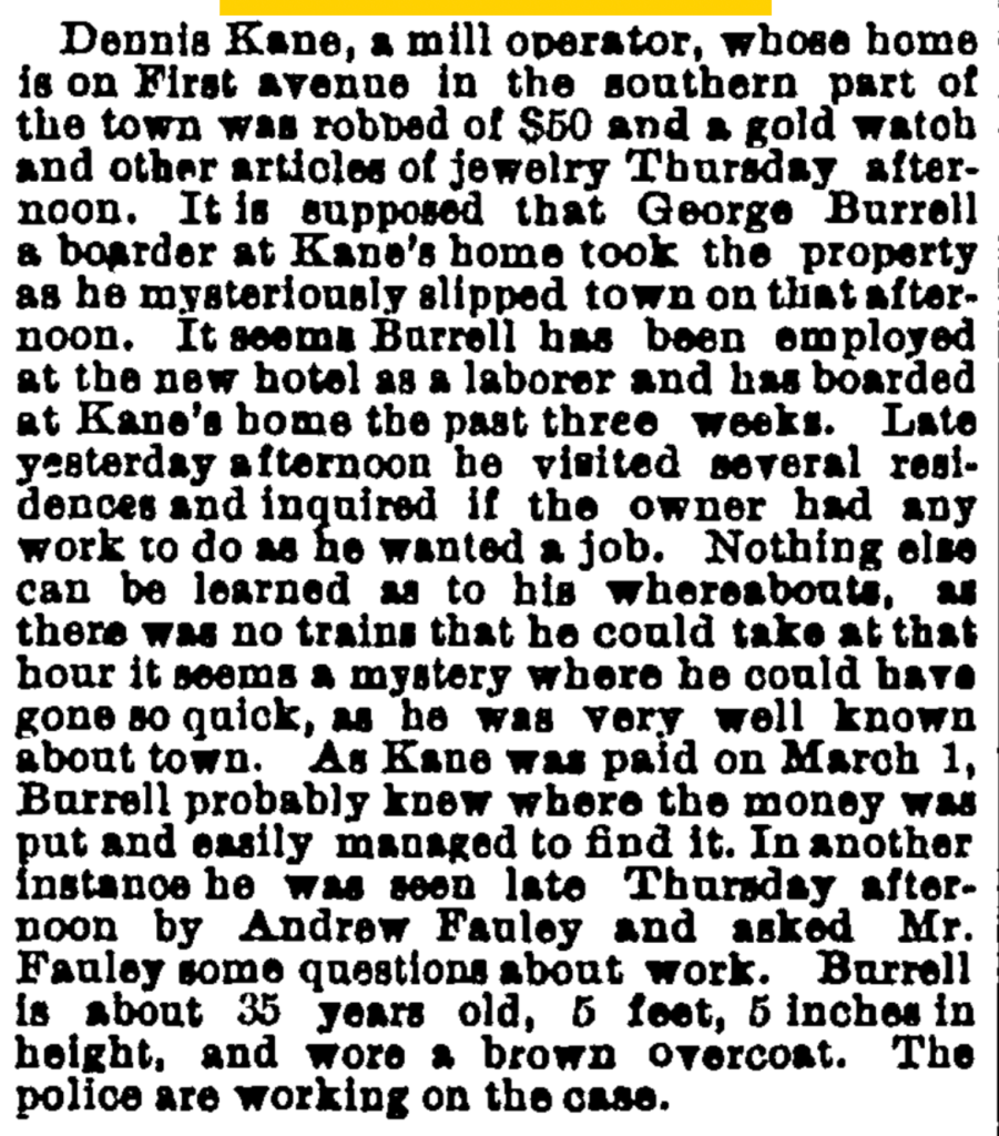 This is Dennis Cain, my great great Uncle who lived with his wife Mary Agnes in Rhode Island, (he worked in the fabric mills there his whole life). At the time of this incident he was living in East Greenwich.