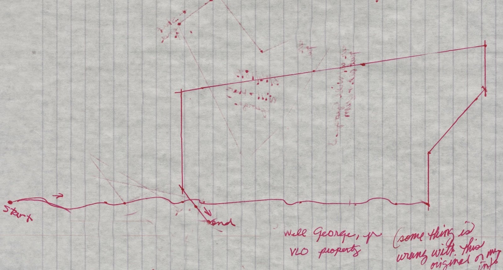Here is another example of a bad deed. The numbers were very hard to read on this one and I believe the clerk writing it out made a couple of mistakes. I have drawn four versions of what the property looks like in this one drawing, none of them line up properly. I was going by what the numbers could be in the deed.