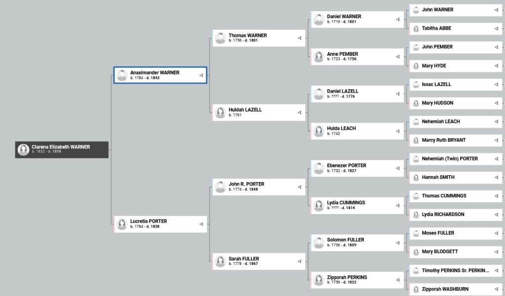I made sure to look over his tree with more diligence, but the WARNER surname is the only commonality between us that I was able to find. So, this means that Zerviah WARNER, wife of Joseph CROSS, and daughter of the same Daniel WARNER and Ann PEMBER in our matches’ tree, was indeed our ancestress. No question about it. Which also means that we descend from Joseph Cross, her husband. (We have their marriage record and we know that when he died, she was still married to him.) Unless she had an affair we don’t know about. I’ll assume she didn’t.