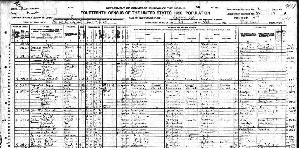 Here you can see them in the 1920 census with Gert and her family along with two prisoners, (they lived in the jailhouse building).