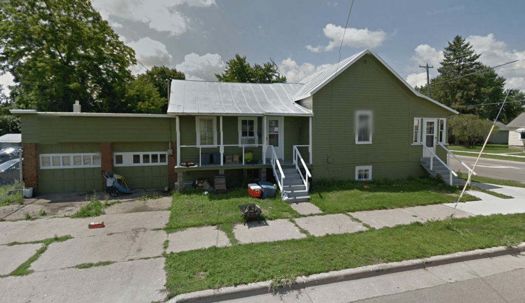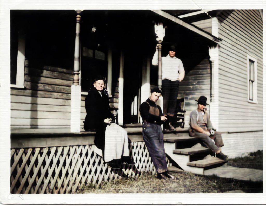 The house in early 1900s. On the porch are Gertrude’s parents and two of her brothers.The house currently seen from Google Street View. You can see the porch is still there, but changed. I am sure the garage is a newer addition, and there is now a window in the basement.