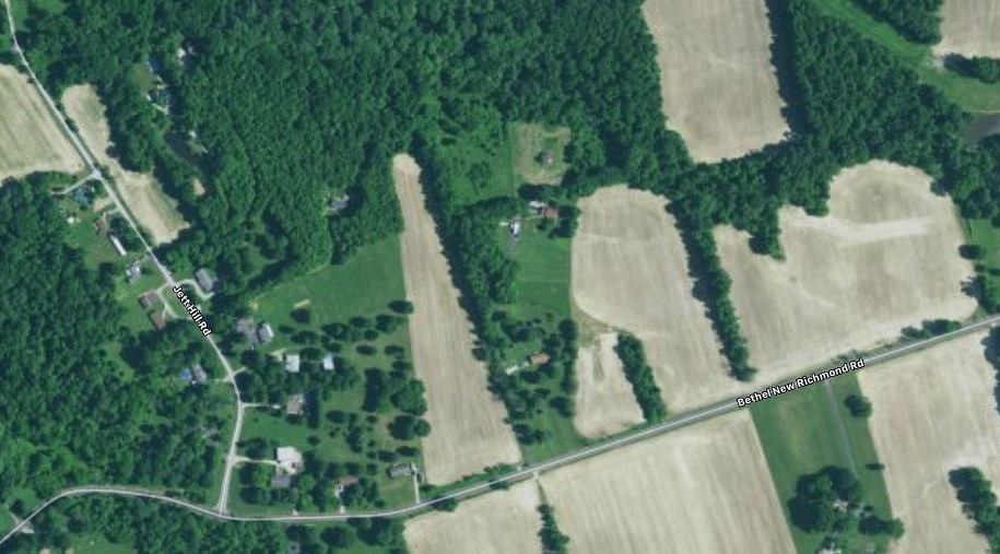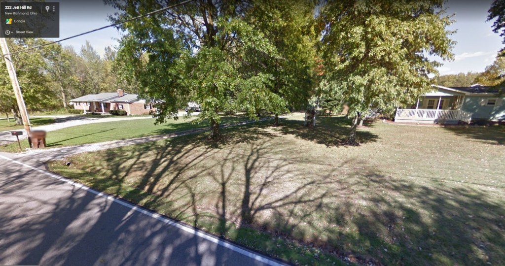 The 55 acre farm was just past the curve on Jett Hill Rd., heading up in this photo. I believe that this is the road to the old Shaw farm. It was about here that John and Sallie had 55 acres. The house probably was demolished, unless it is further back on this road. Everything around here is pretty flat. (But then they owned a lot of property over the years, so I could be barking up the wrong tree.)