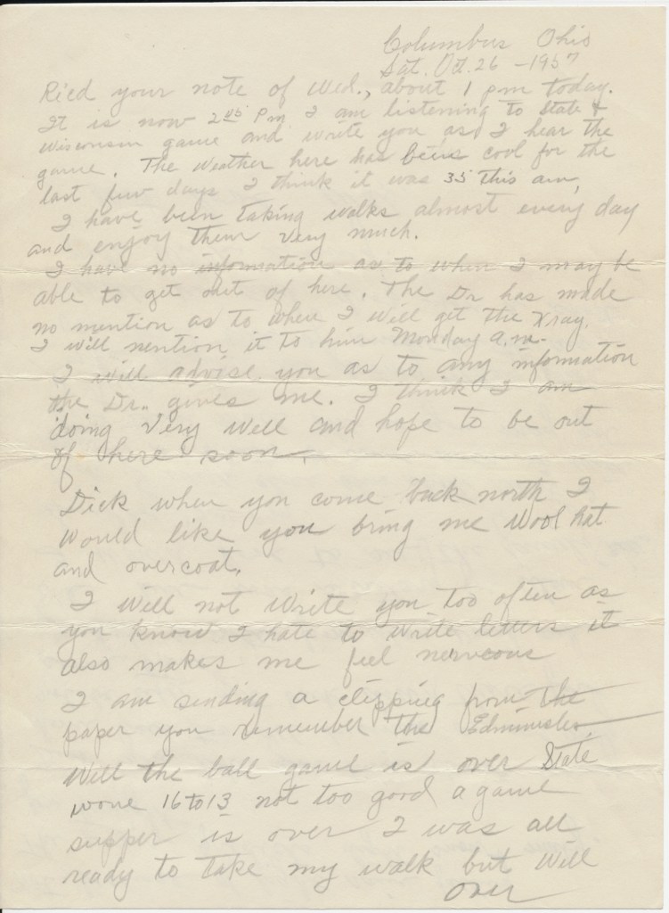 he was coming down but the stinker never showed up. I hope he comes down before he visit you folks, maybe he can help us decide what to do about Burch. At least I would like for him to talk with Cliff, and see if he draws the same conclusion as Ruth and I, maybe we don’t give the old boy as much credit as we should. That the reason I would like to have someone else’s opinion. I hope we’re wrong about his condition.