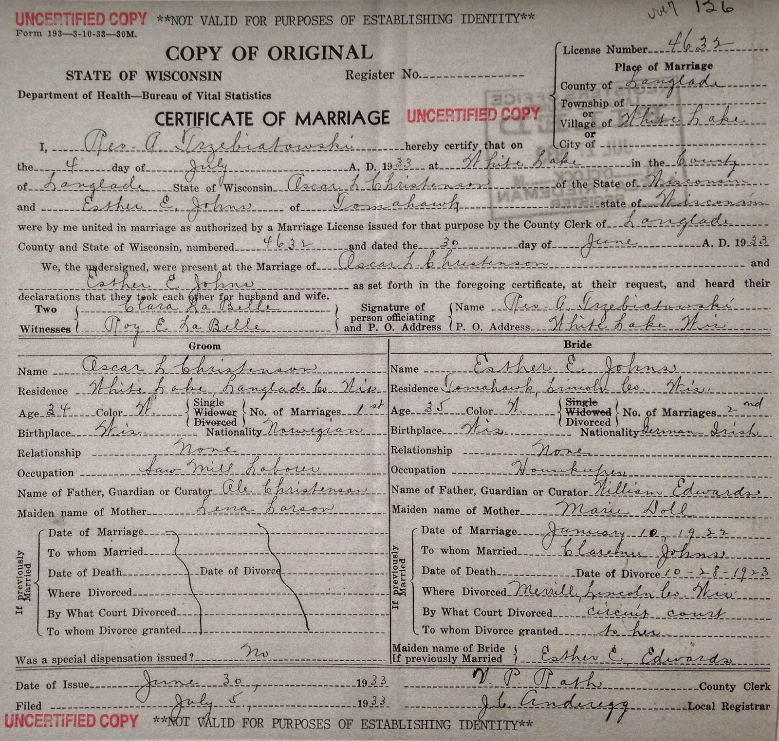 In March of 1958 a tragic accident put an end to both of their lives. I found the following Milwaukee Journal newspaper article, which gives few details about the event that occurred on the 28th. Not much can be gleaned from this except that they were just another statistic for the state to compile.