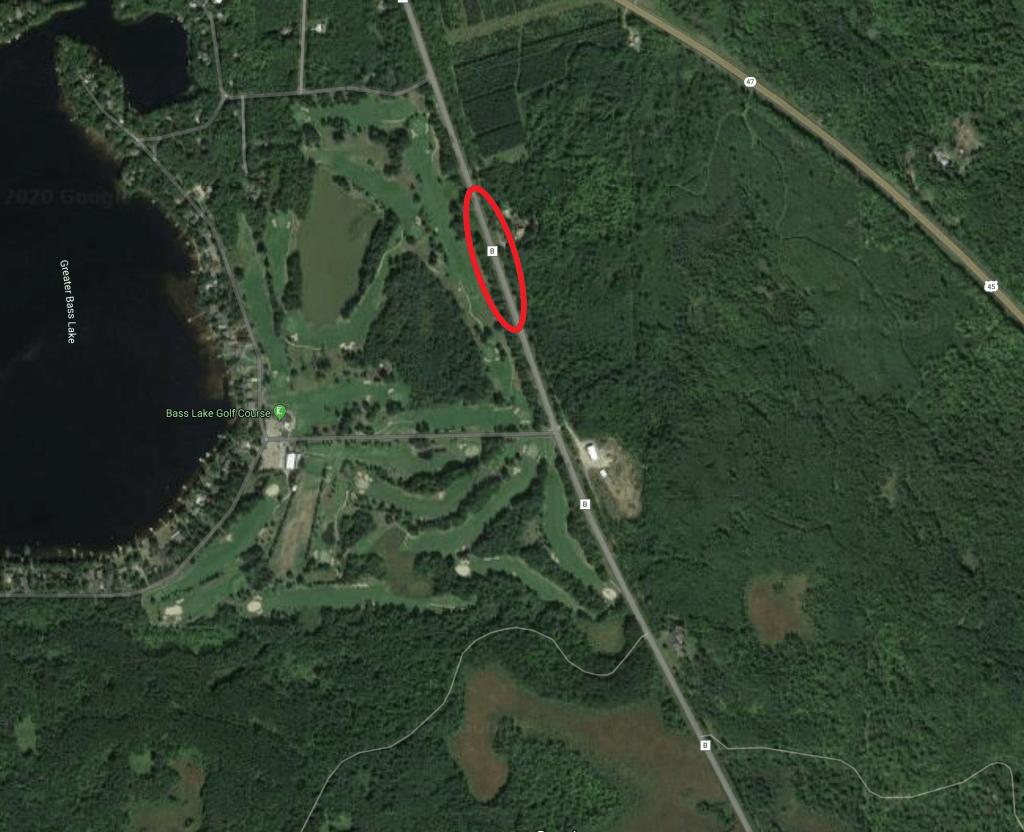 According to the court case the accident happened about 15 miles north of Antigo, by a golf course on (old) 45 (now known as B). Well, the map shows the golf course. The bit circled is where there appears to be a dip in the road as mentioned in the case, which you can see if you use google maps street view. The Paugel car was going south towards Antigo, probably heading back to Shawano where they lived.