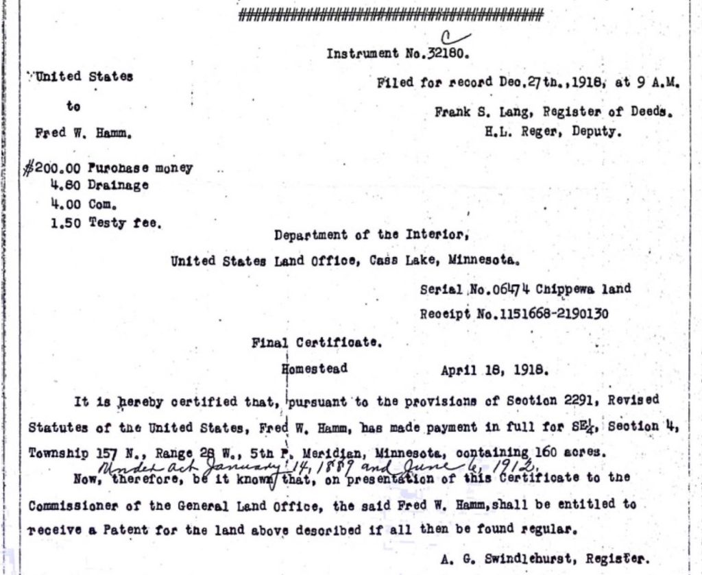 Fred Hamm, maybe in a desperate attempt to get away from his ex (my great grandmother Carrie Amundson), ended up settling in Koochiching County, Minnesota for a while.
