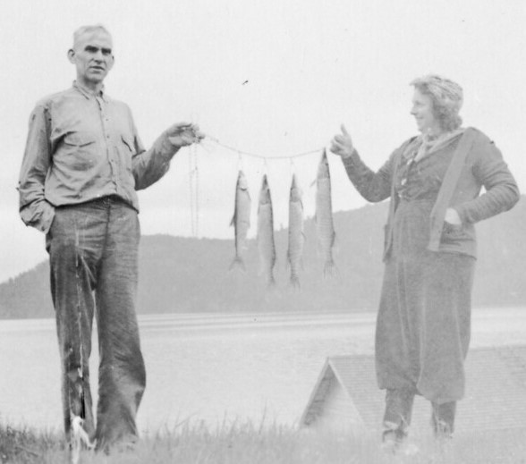 Dad and Dick showing of their catch of the day. Probably in Canada.