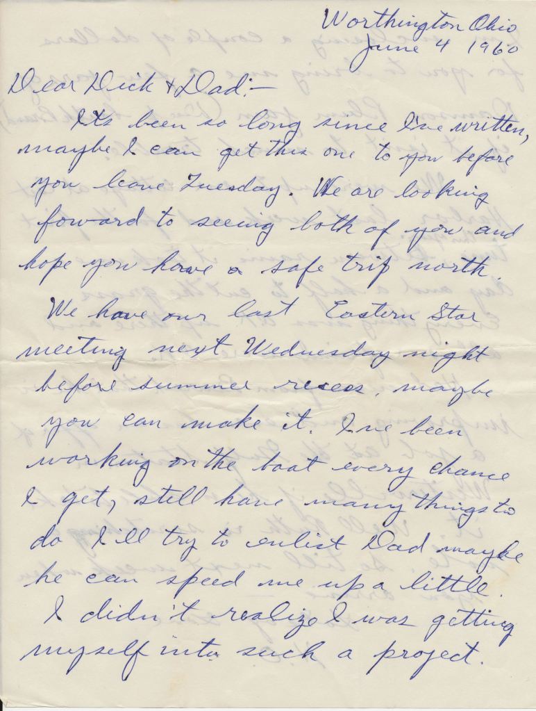 We have our last eastern star meeting next Wednesday night before summer recess, maybe you can make it. I’ve been working on the boat every chance I get, still have many things to do i’ll try to enlist dad maybe he can speed me up a little. I didn’t realize I was getting myself into such a project.