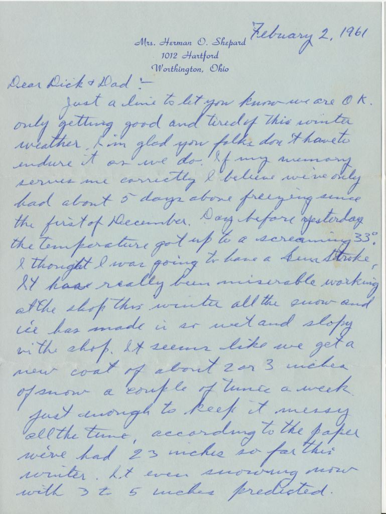 Mrs. Herman O. Shepard 1012 Hartford Worthington, Ohio